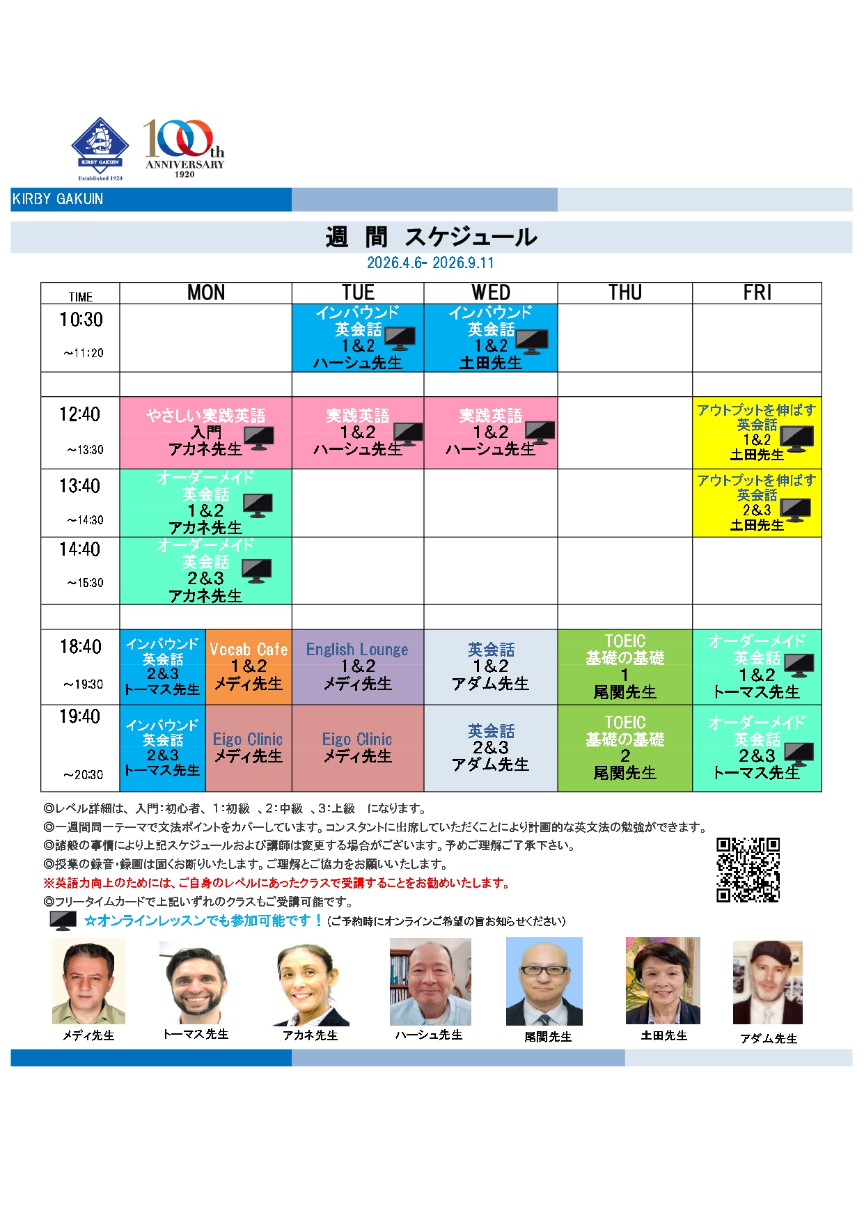 4月からの本学院のフリータイムレッスンについてお知らせいたします。