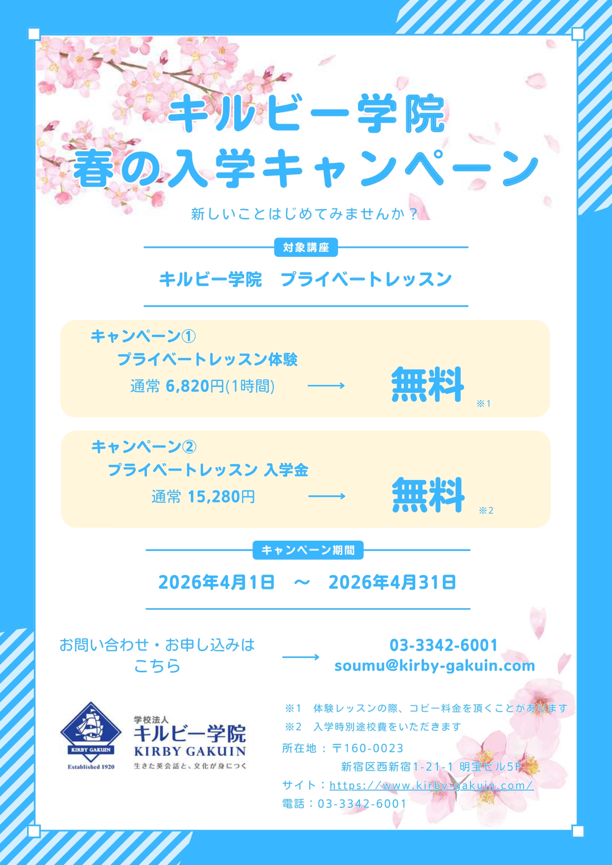 4月からの入校キャンペーンについてのお知らせです。